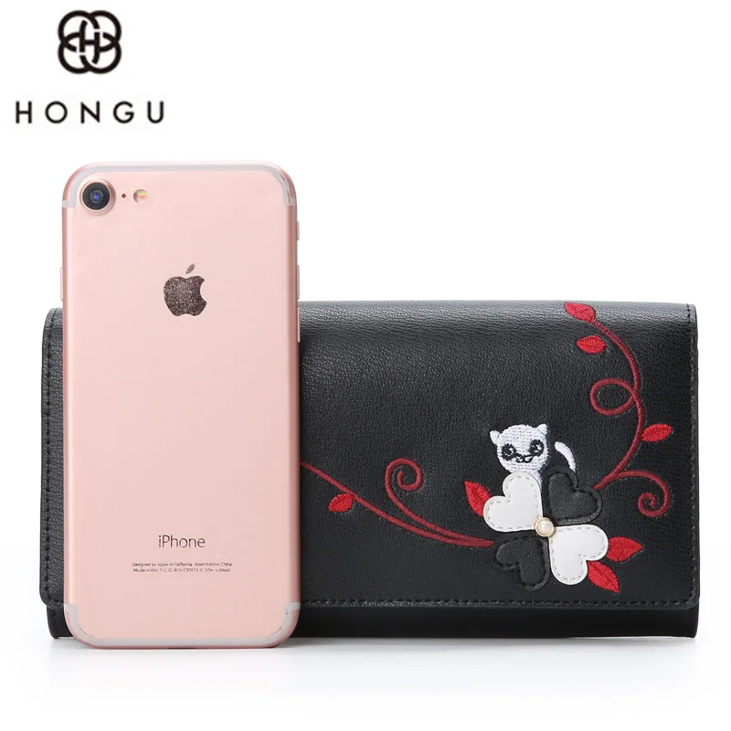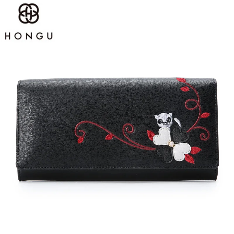 Big Promo HONGU Fashion Women Long Wallet Cow Leather Flowers Handbags Coin Purse Clutch Makeup Bag Passcard