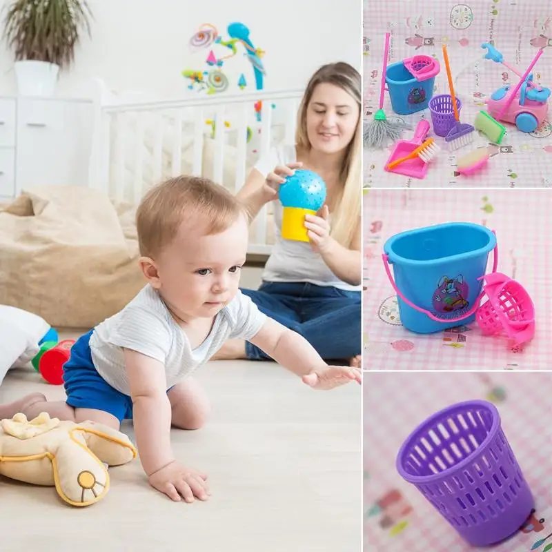 32965895666 9pcs Girls Doll Pretend Play Plastic Toys Mop Broom Cleaning Tools Kits Kids Children Gifts