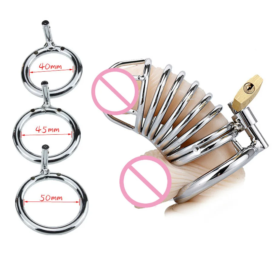 Large Classic Male Metal Chastity Cage Men Penis Rings Mesh Stainless Steel Cock Male Lock Belt Adult Games Sex Toys 40/45/50mm